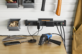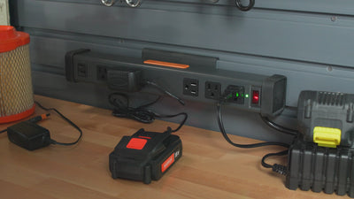 Tools and electronics stay charged and ready with the Gladiator® PowerStrip Bar. This bar includes a resettable 15 amp circuit breaker across five outlets, offering USB-A and USB-C utility outlets plus space for bulky and right angle charges. With multiple mounting options, an 8 ft. tangle-resistant power cord and the Surge Protection feature, this Gladiator® PowerStrip Bar is prepped to power your toughest projects.