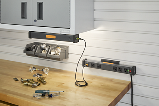 The Gladiator® PowerStrip Bar includes a resettable 15 amp circuit breaker
